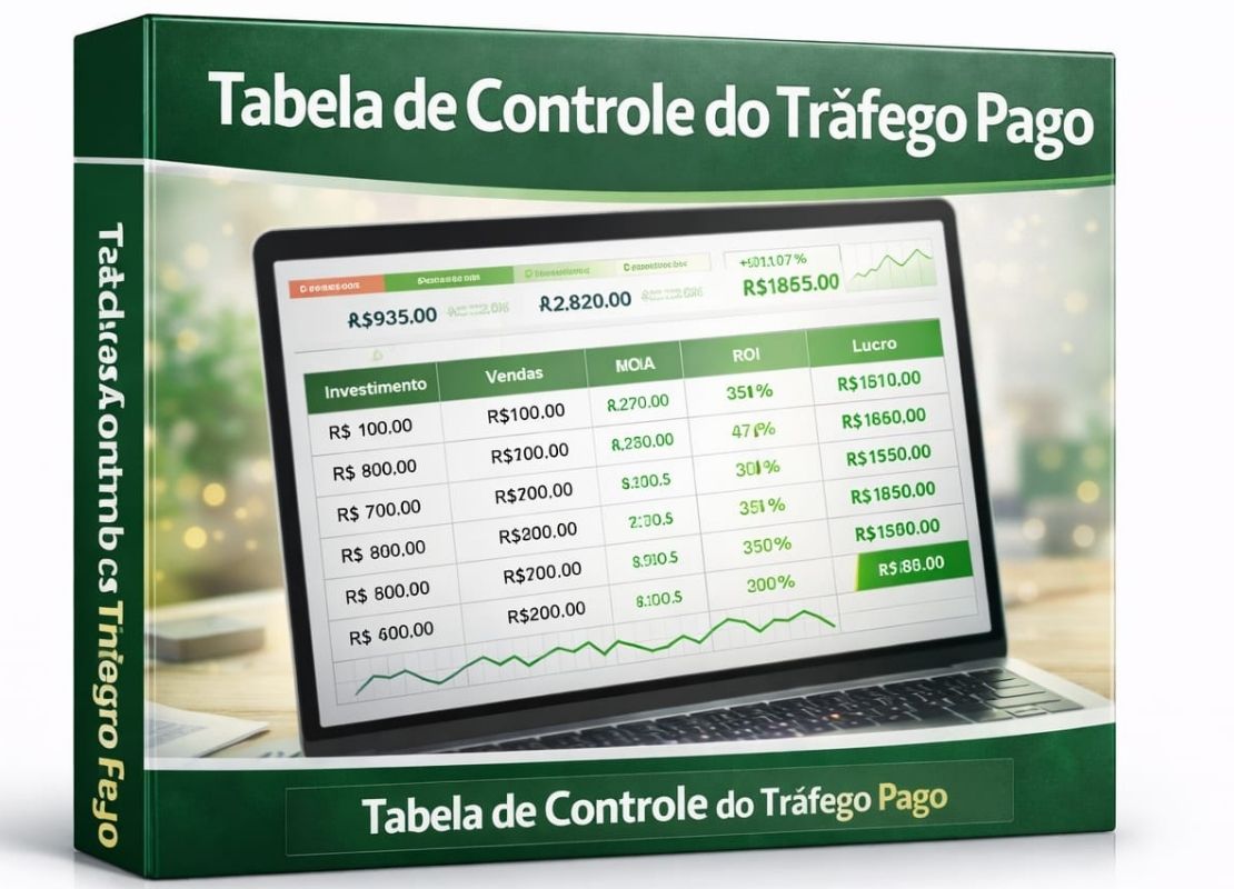 Uma tabela prática e indispensável para acompanhar seus resultados no tráfego pago todos os dias. Você vai registrar seus investimentos e vendas de forma simples, entendendo exatamente o seu ROI e lucro, e tomando decisões inteligentes para escalar o que funciona e parar o que não dá resultado.